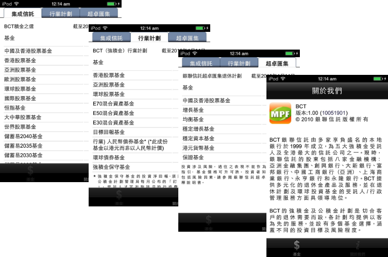 BCT MPF information application for iPhone.