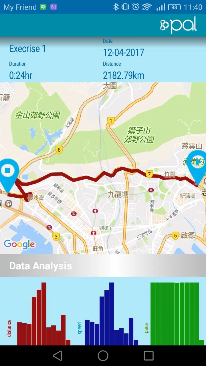 The app on Pebble Watch reads GPS positioning information and collects data, which is then stored in the internal flash memory on PAL Smartstrap. The mobile phone application is used to retrieve the position information and display the running track, as well as activating the PAL Smartstrap to charge the watch.